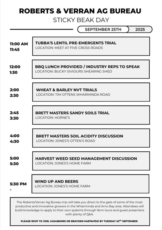 Roberts/Verran Sticky Beak Day (25 September 2025)