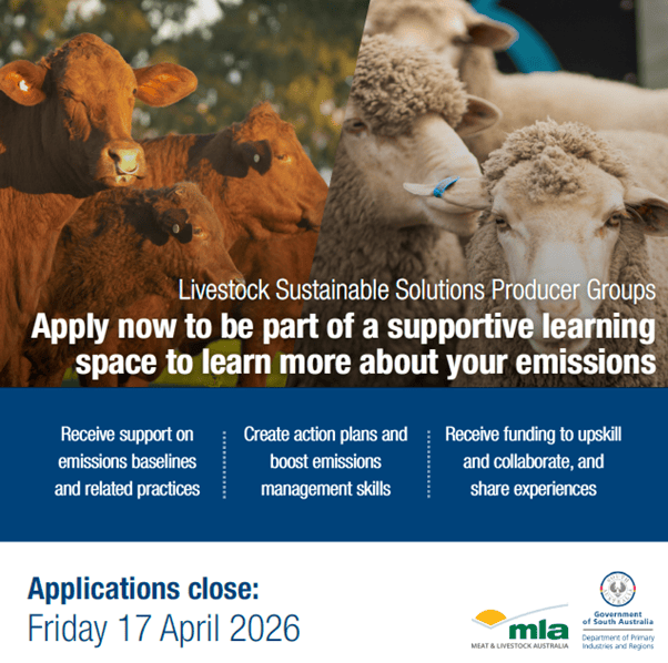 SA Livestock Sustainable Solutions Program – Producer Groups initiative is now live on the PIRSA website and open for applications until Friday, 17 April 2026.