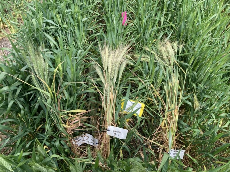 Above: Examples of the same variety sown at different times (with irrigation applied early in the season) and with different frost symptoms were provided as a comparison to the trial site plants. Mowhawk has been adopted by the host trial site farmer (and other local farmers) as a risk mitigation strategy in his ‘red zone’ paddocks.
