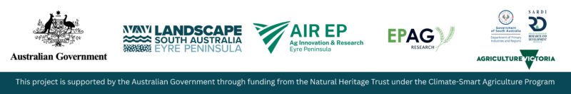 The Sustainable Agriculture EP project is supported by the Australian Government through funding from the Natural Heritage Trust under the Climate-Smart Agriculture Program and delivered for the Eyre Peninsula Landscape Board, a member of the Commonwealth Regional Delivery Partners panel by AIR EP, EPAG Research, PIRSA and Ag VIC.