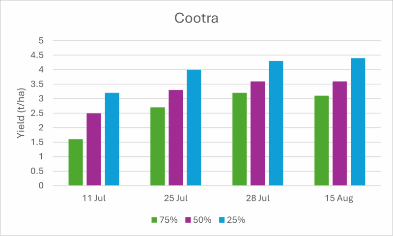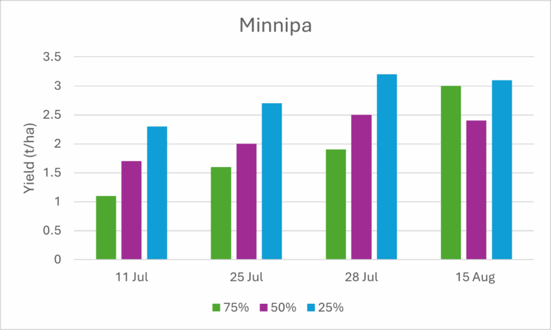 - July rain delivered an immediate lift in yield predictions at most sites, especially between 11 July and 28 July, with gains most pronounced under the 50% and 25% probability scenarios.