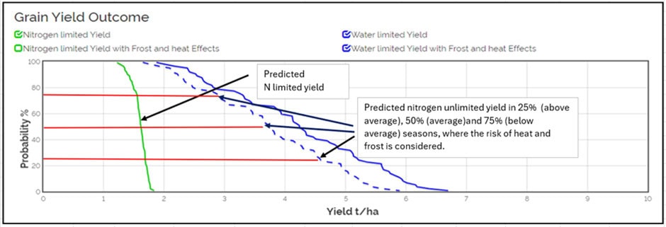 Figure 2: An example of probabilities of grain yield outcomes within a growing season, generated in Yield Prophet®.
