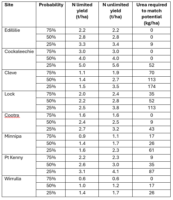 • At sites like Cleve, Cootra, Minnipa, and Pt Kenny, urea applications of 35–113 kg/ha may still deliver a return.