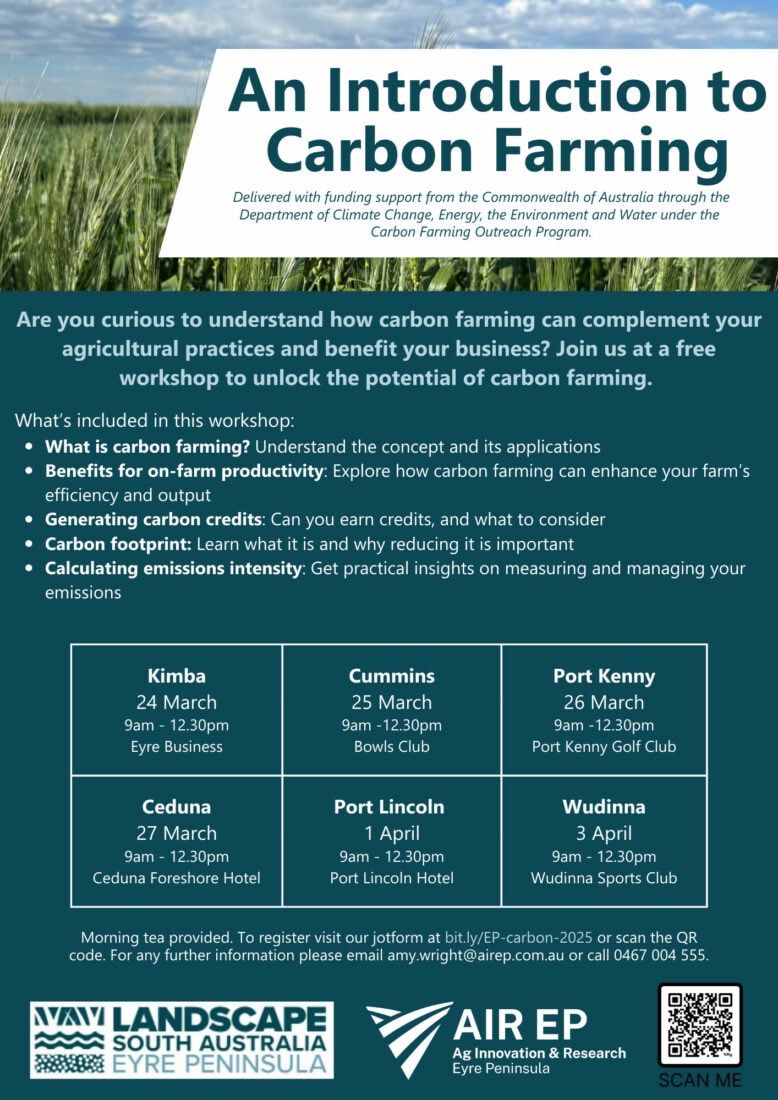 Check out our upcoming carbon farming workshops, developed for farmers that want to gain a basic understanding of ‘carbon farming’, what some of the terms mean, and where to start with it all.